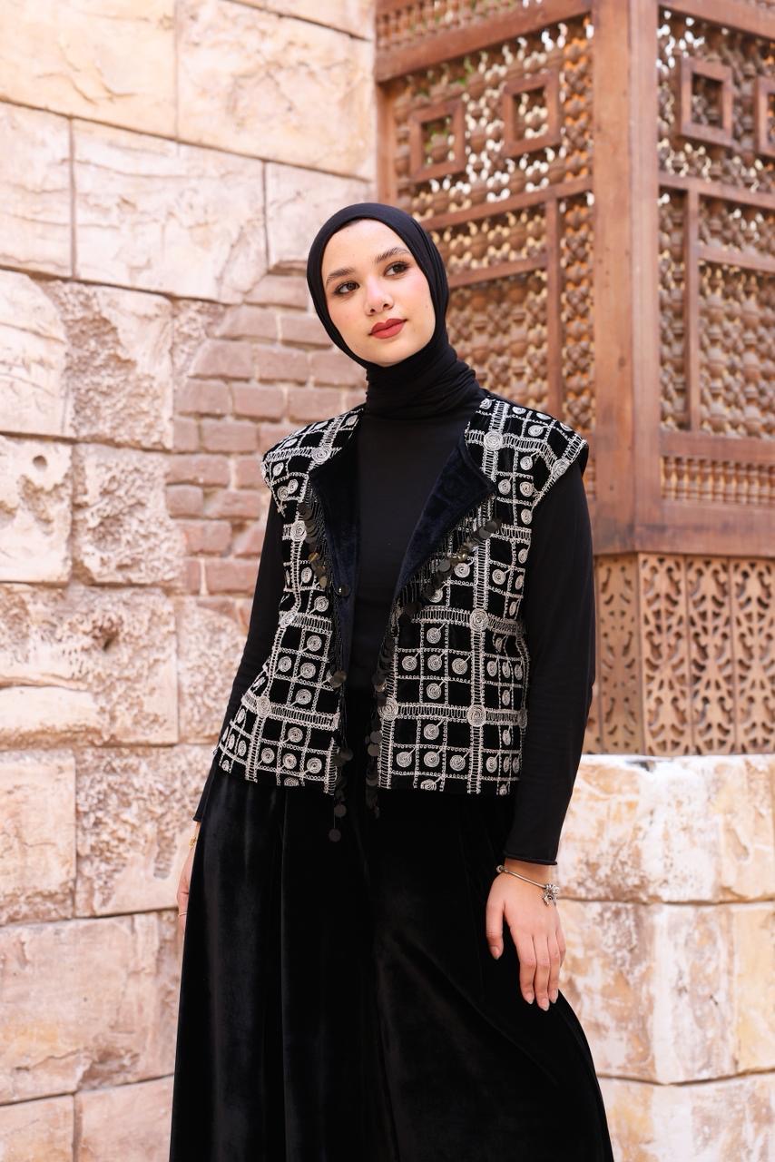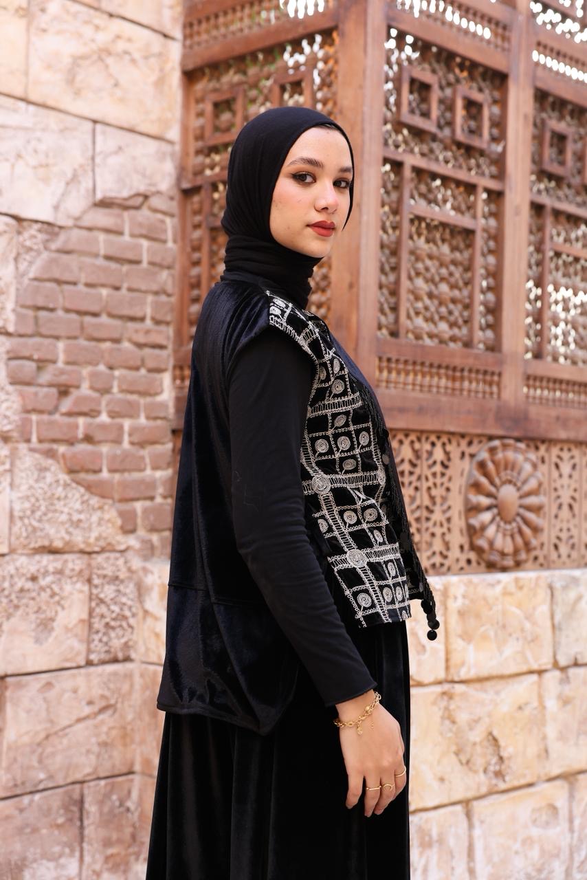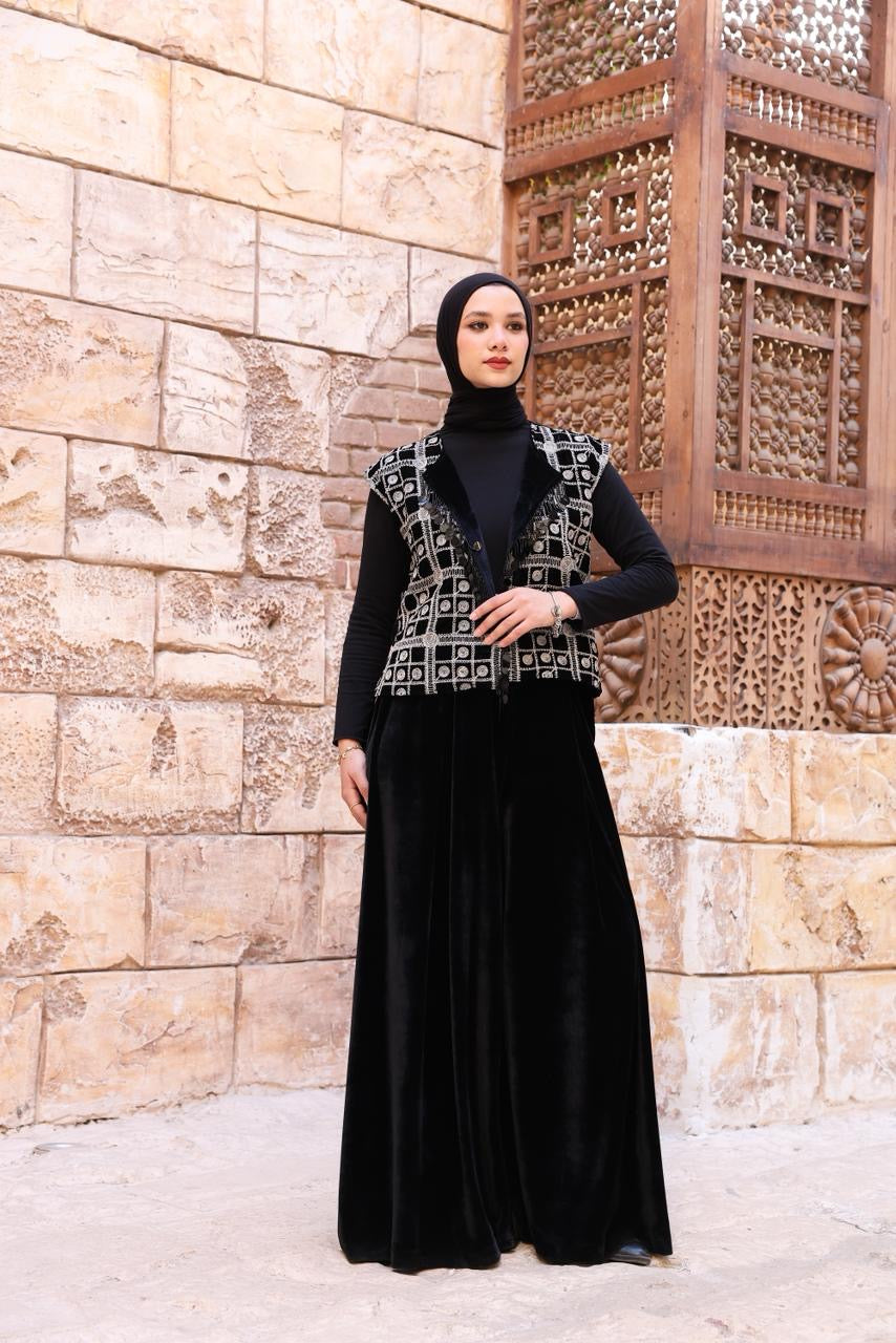 A sophisticated two-piece velvet set featuring wide-leg pants and a beautifully embroidered vest. Designed to reflect timeless elegance with a modern touch, the Noir Set offers a graceful silhouette perfect for Ramadan gatherings and special occasions. Soft, luxurious, and effortlessly refined.
