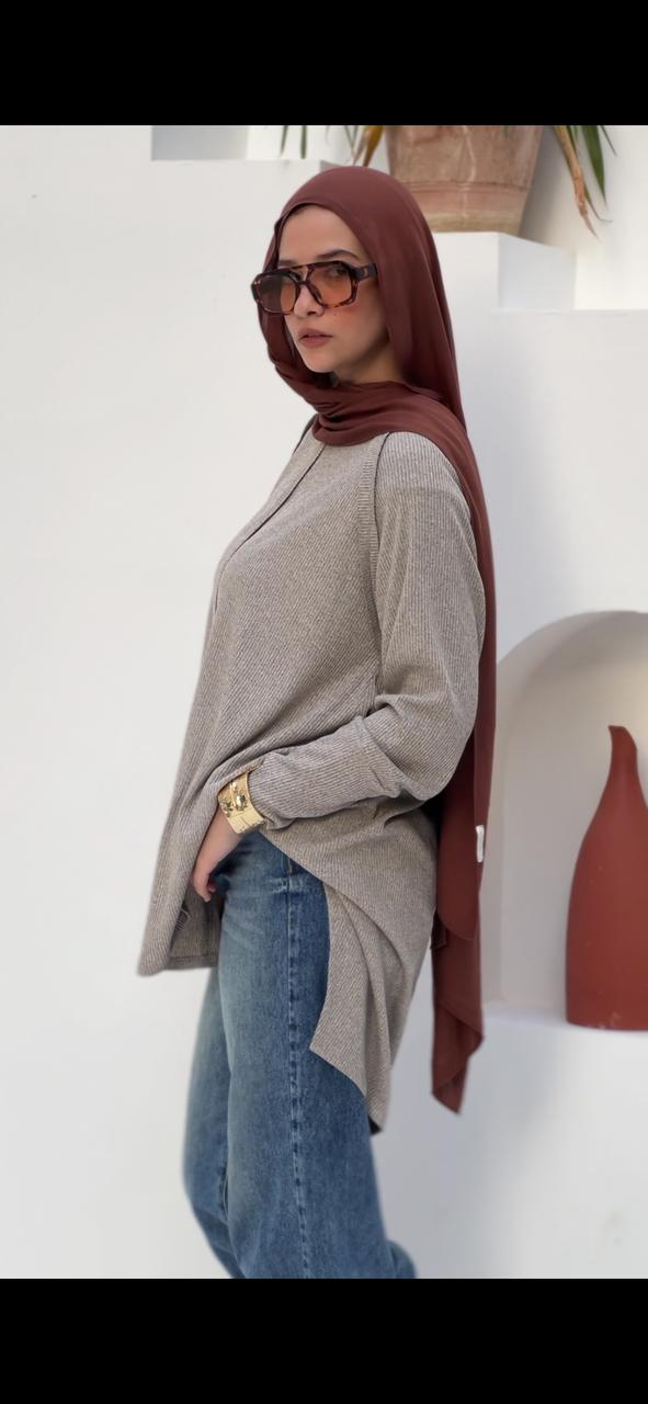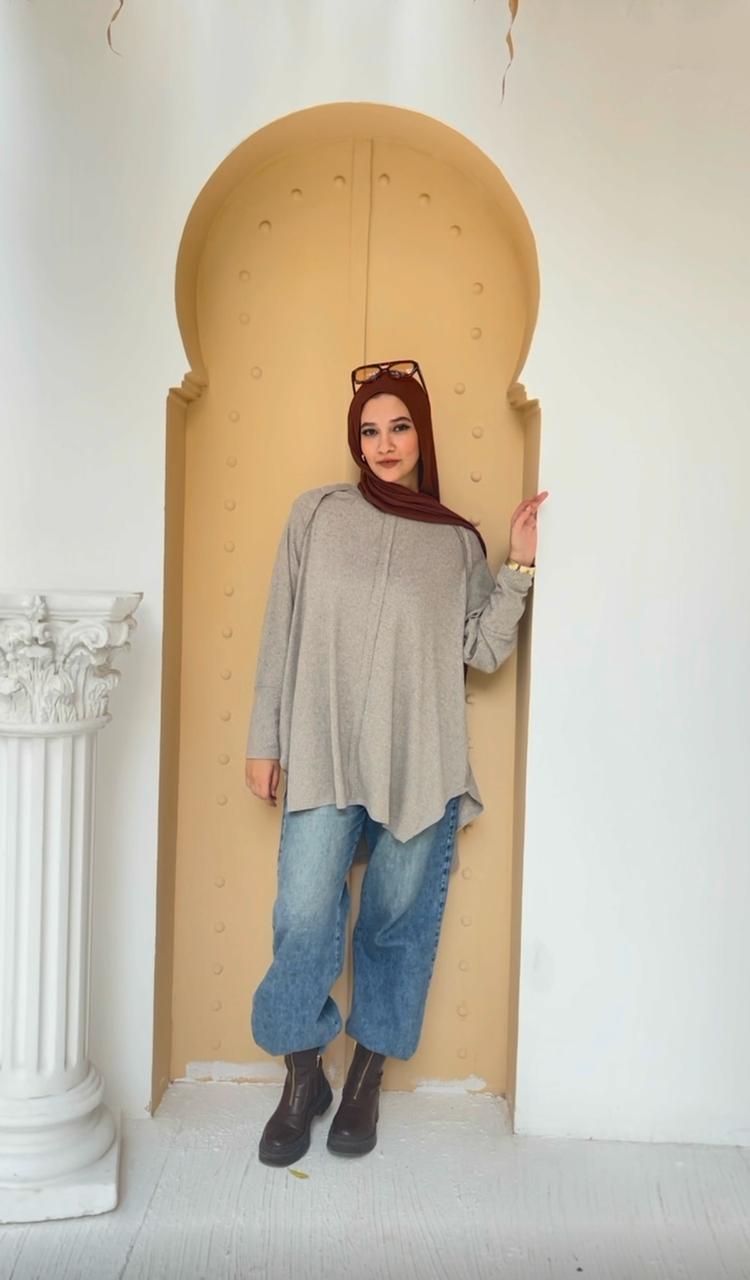Step into effortless style with this relaxed, modern look. Featuring an oversized light grey tunic top, designed with soft fabric for ultimate comfort